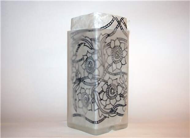 5. Можно обойтись без «мокрого» дела и перевести рисунок с помощью копирки на внешнюю сторону светильника.