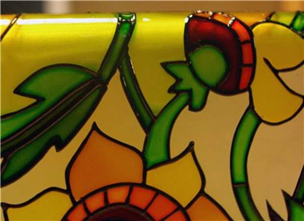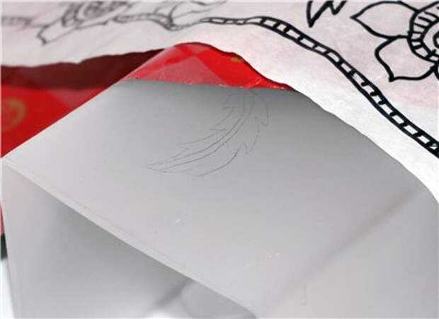 4. Полностью наклеенный рисунок хорошо просвечивается через матовое стекло и его можно обводить контуром.
