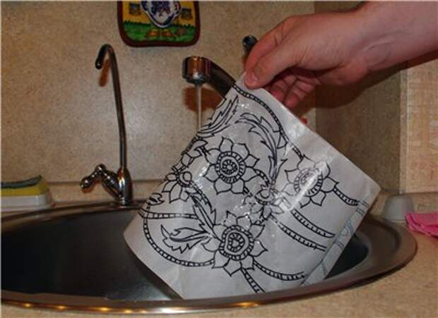 2. Для того чтобы рисунок наклеить нужно его намочить. Здесь главное не переборщить и не допустить, чтобы рисунок сильно размок.