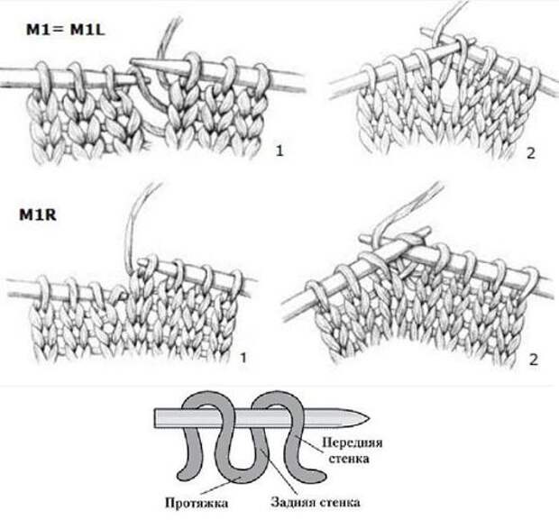 Вязать всего 4 круга, затем перейти на резинку 1 лиц 1 изн - 4 круга. Свободно закрыть петли. Сделать аналогично вторую митенку. Сокращения, принятые в переводах Knitting Club п = петля, петли р = ряд, ряды лиц = лицевая петля изн = изнаночная петля повт. = повторять дв. = двойной ЛС = лицевая сторона работы ИС = изнаночная сторона работы 2 вместе лиц = провязать две петли вместе лицевой с наклоном вправо 2 вм лиц протяжкой = провязать две петли вместе лицевой с наклоном влево (= 1 петлю снять, 1 лицевая, перекинуть снятую петлю над провязанной) 2 вместе изн = провязать две петли вместе изнаночной ДУ = двойное убавление (= 1 петлю снять, 2 вместе лицевой, перекинуть снятую петлю над провязанной) ЦДУ = центральное двойное убавление (= 2 петли снять как при вязании лицевой, 1 лицевая, перекинуть снятые петли над провязанной) протяжка = перекинуть первую петлю над второй петлей М1 = M1L = прибавить 1 петлю из скрещенной протяжки между двумя соседними петлями с наклоном влево M1R = прибавить 1 петлю из скрещенной протяжки между двумя соседними петлями с наклоном вправо ОиП = обернуть и повернуть центр. = центральный вспом. = вспомогательный дополн. = дополнительный